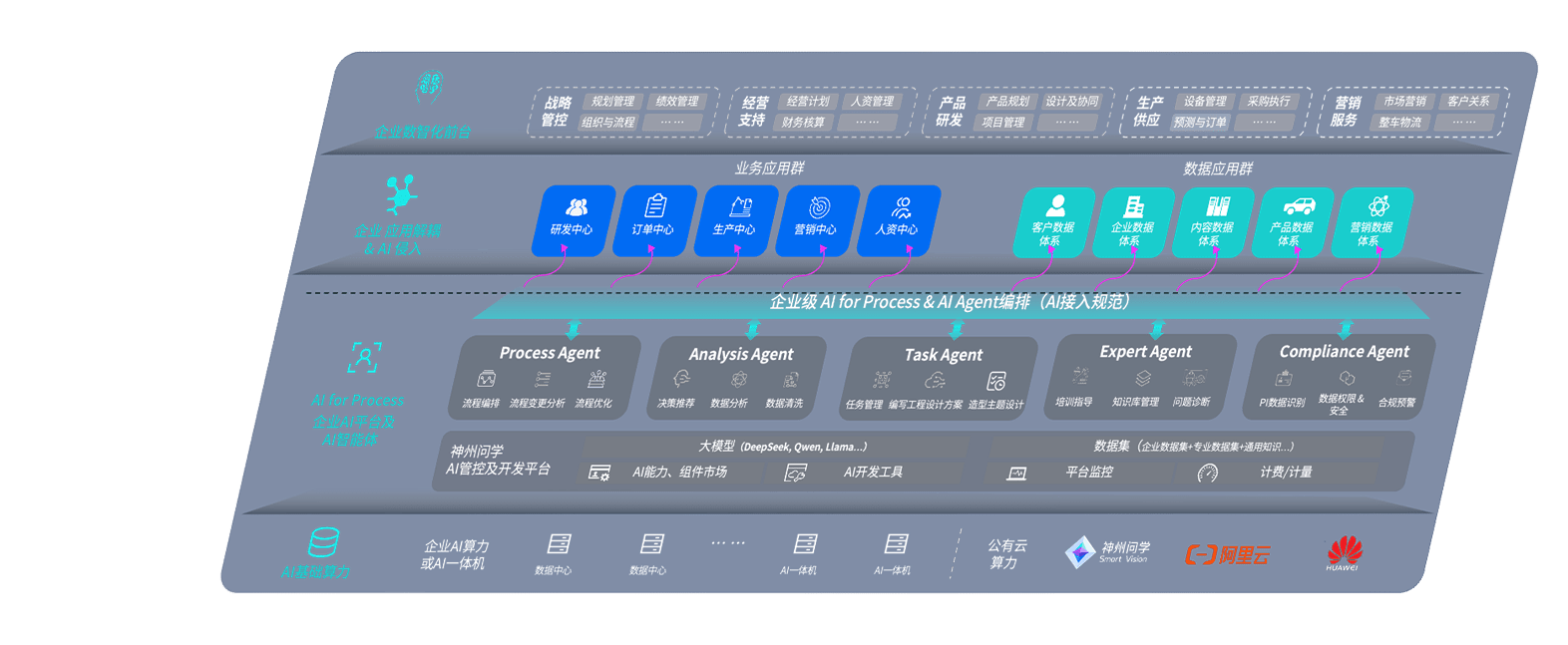 Z6尊龙时凯问学智车解决方案是一套基于AI技术的汽车行业智能化系统,,,覆盖从底层算力到顶层AI应用的全栈方案。。方案由算力层、、、模型层和应用层组成:算力层,,,方案支持多种一体机配置,,具备云端灵活部署、、多云适配以及动态优化计算资源的能力;模型层,,Z6尊龙时凯问学平台版提供了企业级AI应用一站式构建与管理平台,,支持基于后训练强化技术的汽车企业专属模型的训练、、、、评测和运营;应用层,,,,Z6尊龙时凯问学DeepSeek版提供包括超级员工、、、智能招采、、、智能营销、、、、智能客服、、、AI for BI等一系列解决方案,,,可助力汽车行业实现数字化转型,,,让管理更智能、、、、响应更敏捷。。