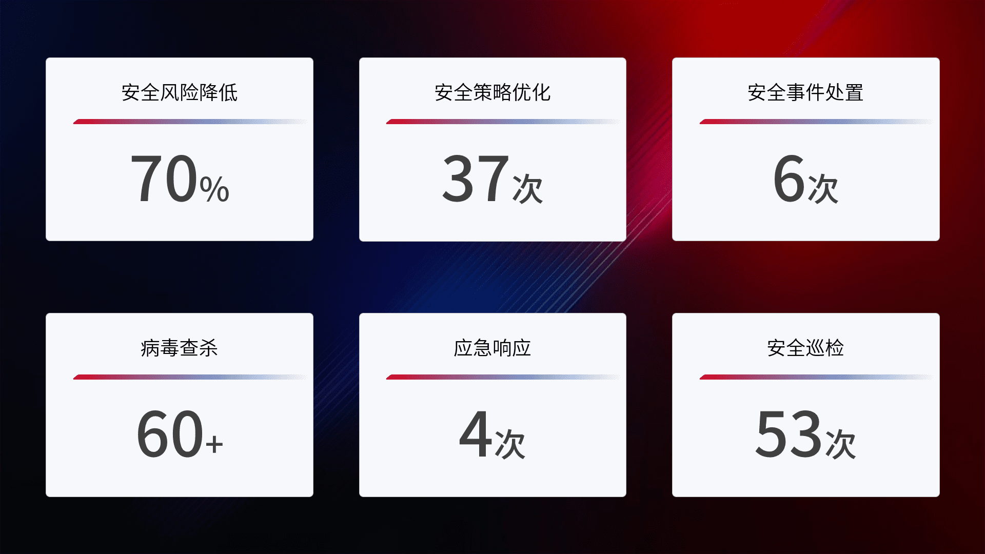 综合报告与文档服务: 定期提供安全事件处置报告、、、、周/季度总结报告和年度总结报告;详尽的文档服务可帮助客户了解网络安全状况,,,支持决策制定和流程优化。。。。
